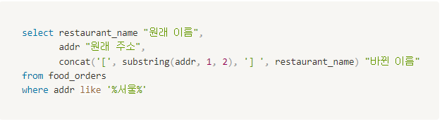 - substr(조회 할 컬러럼, 시작 위치, 글자 수)