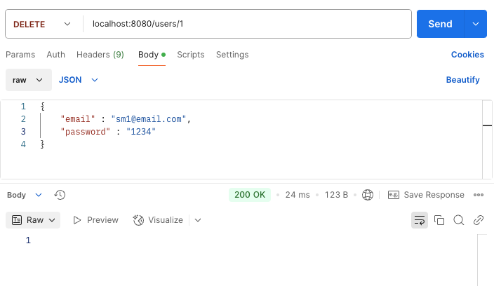 - 회원 삭제시 이메일과 비밀번호 입력