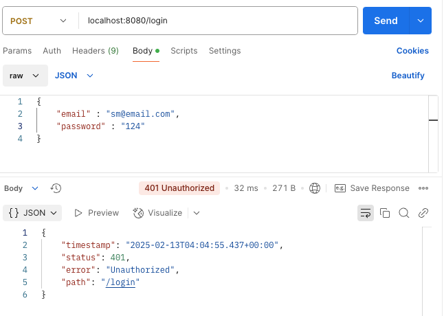- 로그인 실패(401에러 발생)