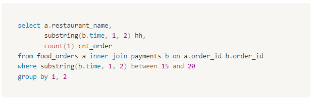 <음식잠별, 시간별 주문건수 집계>