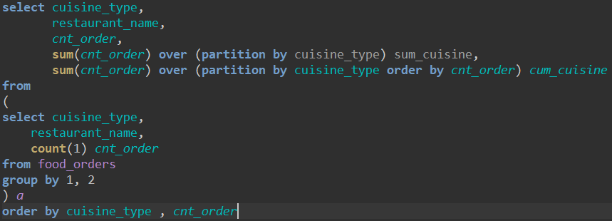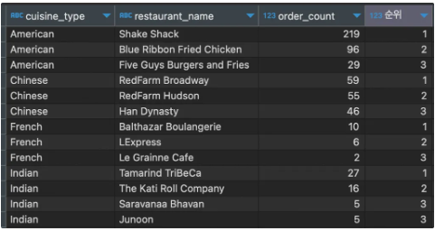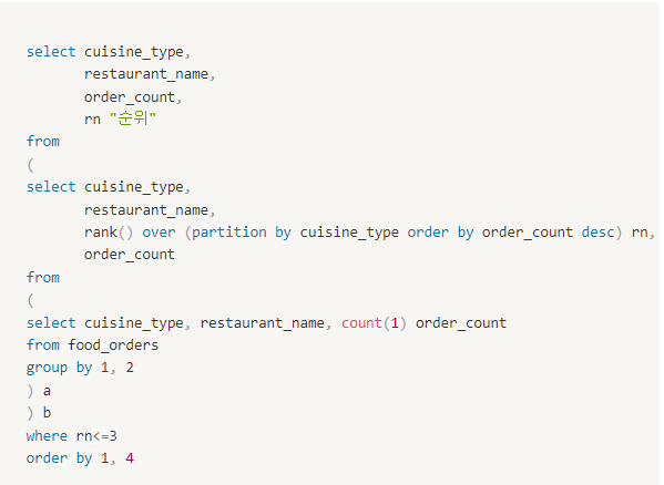 - 기본구조 : window_function(argument) over (partition by 그룹 기준 컬럼 order by 정렬 기준)