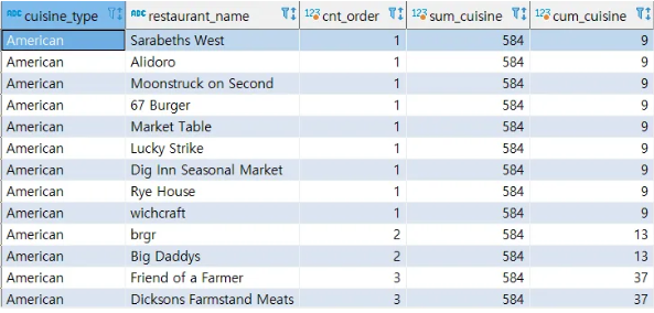 <전체에서 차지하는 비율, 누적합을 구할때> [SUM]
